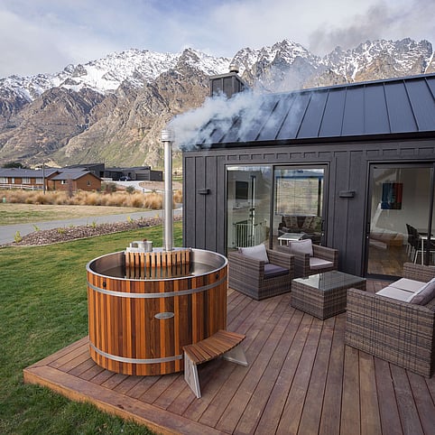 Snuggle up in the Fiordland Wood-Fired Hot Tub, the perfect cosy retreat for you and your special someone. Let the warmth of the fire and the serenity of nature create the ultimate intimate escape.